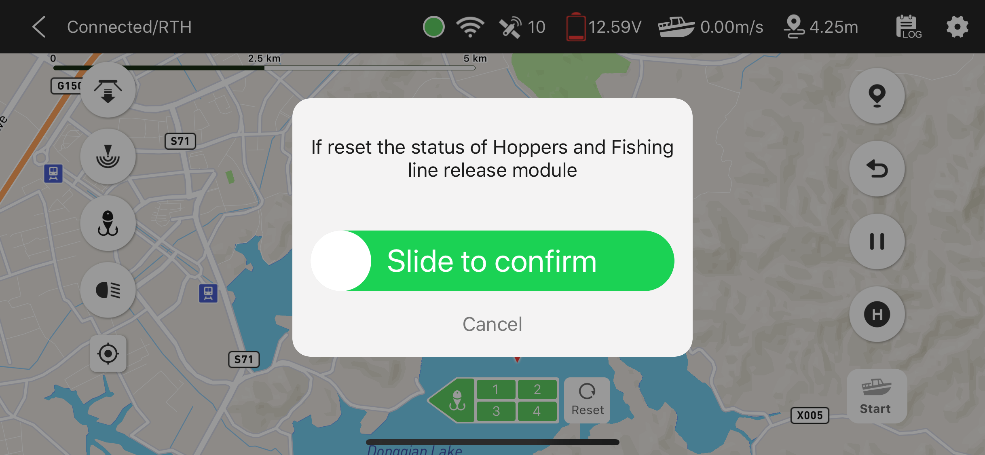 1) Compruebe si la batería del barco de cebo está por debajo de un nivel bajo que provoque el regreso a casa con batería baja. 2) Verificar si el barco sobrepasa la geocerca que activa el regreso a casa.
